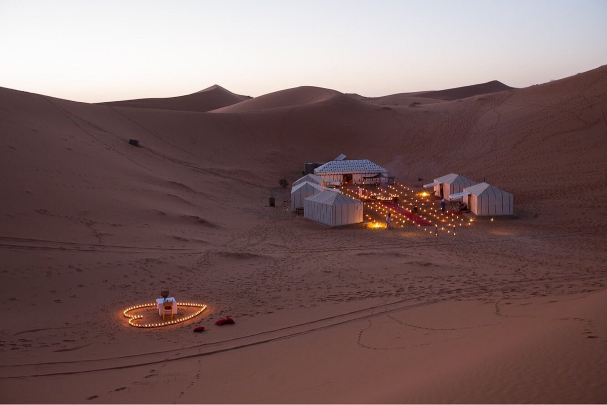Experience unmatched tranquility at our Luxury Desert Camp — where golden dunes meet elegant comfort. Sleep beneath a sky full of stars, unwind in beautifully designed tents, and enjoy unforgettable sunsets in complete privacy. Your exclusive oasis in the heart of the desert awaits.